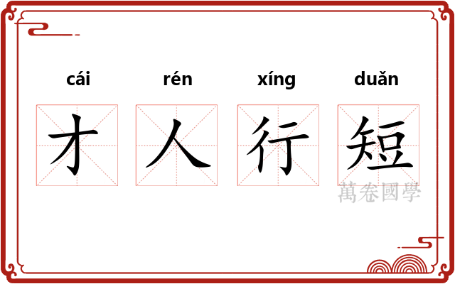 出处:清・陈森《品花宝鉴》:本知道是个风流夫婿,却不道是这样轻薄,应着一句常说的话:‘才人行短了。’