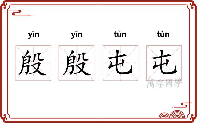 繁盛的样子。《汉・桓宽・盐铁论・国病》:“文、景之际,建元之始,民朴而归本,吏廉而自重,殷殷屯屯,人衍而家富。”